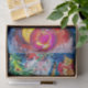 Colourful whimsical and artistic acrylic painting with floral ornaments,winter plants, holly berries toys ,gifts and baloons. by Bulgan Lumini (c)