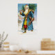 A charming vintage Christmas poster featuring Santa Claus on his way to town.