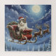 This whimsical puzzle features a Festive cat in a Santa hat lounges in a garland-trimmed sleigh led by two reindeer over a snowy pine forest under a moonlit, starry winter sky. Finished in an oil acrylic paint print.