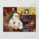 Santa at home with his two West Highland Terriers relaxing in front of the fire before the big day. Notice Mona Lisa over the mantle holding the same dog.