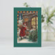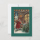 Santa and his bag of gifts have arrived in the middle of the Christmas celebration. The well-lit window shows the beautiful, sparkling tree and the happy family. This antique Christmas postcard is not frequently seen and delights with its vivid colours and nostalgic, old-fashion imagery. Deliver your holiday message with this festive illustration. It is perfect for cards, invitations, postcards, décor and any holiday gift.