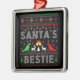 Santa's Bestie Dino Winter Christmas Ugly Sweater Metal Tree Decoration