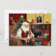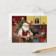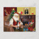 Santa at home with his Boston Terrier, relaxing in front of the fire before the big night. Notice Mona Lisa over the mantle holding the same dog.