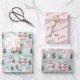 Celebrate the magical and festive holiday season with our custom holiday wrapping paper sheets. Our vintage holiday design features three different complementing designs. The first wrapping paper sheet features a fun vintage town scenery and landscape. Every little detail is captured in this quaint little neighbourhood. Features Pink house decked out in festive decorations, pink snow-covered trees, festive showman, lamp post, children ice skating. A pink vintage van carrying presents on the roof of the car, with Santa Claus peeking his head out and waving. The second wrapping paper sheet features the words fa la la handwritten with holly accents. All artwork is hand-drawn original artwork by Moodthology Papery.