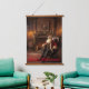 The polyester fabric displayed many wrinkles and several sharp creases throughout. At the bottom of the tapestry, I noticed a bulge in the fabric because it was not pulled tight enough before being connected to the wooden boards. It took me over an hour to spay water on the tapestry before putting it on an ironing board where I used a warm iron over a polyester cloth to remove the wrinkles and creases in the material. I was able to get out the wrinkles and creases that made that tapestry look as beautiful as its picture.
