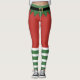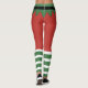 Get dressed up this Christmas with these cool elf leggings for women! Featuring a fun design of a red Santa Claus helper elf outfit and green striped socks, these leggings are perfect for holiday parade costumes and festive cosplay.