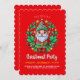 Step into a magical holiday wonderland with this delightful Christmas Party invitation, featuring an adorable elf dressed as Santa, surrounded by festive foliage and sparkling ornaments. Against a vibrant red background with scalloped edges, this whimsical design brings joy and cheer to any holiday event. The intricate details and bright colours make it perfect for those who love a festive, fun-filled holiday vibe. Send this enchanting invite to spread Christmas magic and invite loved ones to an unforgettable celebration.