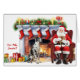 The front of this Christmas greeting card has an image of a black and white Great Dane dog who has found Santa Claus resting beside the blazing fireplace after delivering the family gifts. Santa holds one last package, and the dog looks expectantly at him. The text at the side says "For ME, Santa?" All the text, inside and out is customizable, so you may change it or add to it, if you'd like. See more Great Dane images, along with dozens of other dog breed products, at Dog Village.