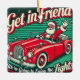 This playful square ceramic ornament captures Santa in a retro red convertible, waving with a friendly smile. The phrase "Get in Friend, We're Going to Enjoy the Lights" adds a touch of holiday spirit, making it a perfect addition to any Christmas decor.