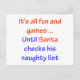 It's all funn and games until Santa checks his naughty list. Humourous Christmas design warning all the bad little boys and girls of Santa's naughty list!