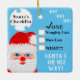 Fun Naughty and Nice Checklist for Santa. Santa's on his way is written next to jolly Santa Claus with red white hat against sky blue background.