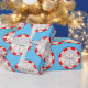 This festive custom gift wrapping paper features a colourful Christmas theme. A Santa's Nice List seal is tiled across the wrapping paper over a bright blue background. The frame of the seal features a red and white striped peppermint candy cane pattern. A Special Delivery notice is printed in the bottom portion. The centre features a gold glitter style snowflake with a sample child's name in the centre. You can personalise the gift wrap to include your own custom name or text.