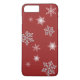Illustrated sparkly snowflakes on a Christmas red background decorate this iPhone 7 case, making it the perfect holiday gift.