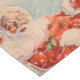 Here comes Santa Claus through snow and blizzard on Christmas Eve on a holiday table runner.