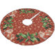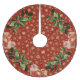 Christmas tree skirt in with a Jolly Santa Claus, seasonal holly and berries on red with gold sparkly snowflakes.