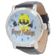 Santa's Sleigh Watch features a light blue snowy background, Santa's Sleigh with reindeer silhouette flying in front of a bright moon. Red decorative text is Happy Holidays. (Watch numbers can be deleted if you prefer your watch without them.) Perfect for wearing this Holiday season or as a gift for Christmas. Choose the style and colour of your watch! Styles for men, women and children.
