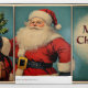 This trifold Christmas card is designed with a nostalgic, old-fashioned Christmas theme, showcasing a traditional Santa Claus, festive holly, and a classic "A Merry Christmas" greeting.