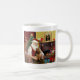 Santa at home with his Welsh Terrier, relaxing in front of a cosy fire before the big night. (Notice Mona Lisa over the mantel.)