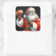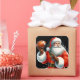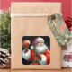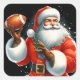 Santa Claus, dressed in his traditional red suit with white trim, holds a football with a playful expression. The background is festive, emphasising the holiday spirit. This cheerful moment captures Santa’s fun side during the Christmas season.