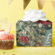 The wrapping paper features a delightful and nostalgic scene of an old-fashioned Santa Claus in a charming winter garden adorned with lush Christmas greenery and majestic evergreen trees. The design exudes the warmth and magic of the holiday season.