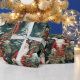 The wrapping paper features a delightful and nostalgic scene of an old-fashioned Santa Claus in a charming winter garden adorned with lush Christmas greenery and majestic evergreen trees. The design exudes the warmth and magic of the holiday season.