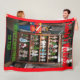 Festive Christmas holiday themed scene perfect for displaying and snuggling up to all winter long. Santa's Workshop is written in a snow capped red font above the wonderful display of Nutcrackers of all types. Merry Christmas is written in green text on bottom of blanket. Nice keepsake to use year-after-year for anyone male or female who loves Christmas. Original Photography and design by TamiraZDesigns.