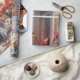 Charming vintage wrapping paper featuring Santa with his elves in the workshop.