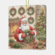Bring the heartwarming magic of a cozy Christmas to your tree with this charming square ceramic ornament! Featuring a delightful illustration of Santa Claus happily crafting a festive evergreen wreath in his workshop, complete with a roaring fireplace, decorated tree, and plenty of crafting supplies.