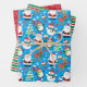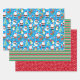 These festive, modern, adorable Christmas papers are so fun! Santas, Rudolphs, penguins, and snowmen on blue, red, green and white stripes, and red retro snowflakes are sure to make your gifts look fabulous. Get enough to wrap all your Christmas gifts.