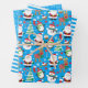These festive, modern, adorable Christmas papers are so fun! Santas, Rudolphs, penguins, and snowmen on blue, blue and white stripes, and blue retro snowflakes are sure to make your gifts look fabulous. Get enough to wrap all your Christmas gifts.