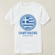 Santorini, Greece men's white T-Shirt featuring the national flag of Greece inside a Greek blue Aztec circle and the name of the island written in Greek style. This T-Shirt is ideal for you to wear while you are enjoying your vacation on the beautiful Greek island of Santorini. You can also give this as a gift from Greece to anyone who will like this T-Shirt.