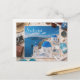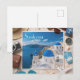 This postcard captures the timeless beauty of Santorini, where white‑washed homes and iconic blue domes overlook the shimmering Aegean Sea. Surrounded by sun‑soaked travel essentials—hat, camera, seashells, and the promise of adventure—the scene evokes the carefree joy of island wandering. A perfect keepsake for travelers, dreamers, and anyone enchanted by the magic of Greece’s most beloved island.