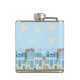 Santorini Blue White Greek Village Coastal Art Hip Flask