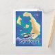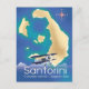Santorini Cyclades islands ,Aegean Sea map travel poster art print.