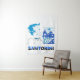 This image depicts a stylised representation of Santorini, a Greek island known for its stunning white-washed villages and breathtaking sunsets. The image features a blue outline of the island of Greece, with a prominent focus on Santorini. A stylised image of a traditional Santorini church with a cross atop its dome is featured, along with a depiction of the iconic blue and white architecture. The word "SANTORINI" is displayed in bold black letters, partially obscured by blue and white waves, symbolising the Aegean Sea surrounding the island. The overall image is a simplified and graphic representation that evokes a sense of the island's beauty and charm.
