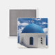 Magnet with Santorini, Greece photo with blue sky and white clouds.
