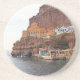 Santorini hillside harbour, Greek island in the Cyclades , round stone coaster.