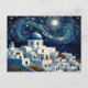 Santorini, Greece Starry Night - Greek Island Art Holiday Postcard