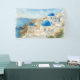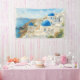 Santorini Greece Watercolor Banner, Blue Dome Church Art, Wedding Event Decor