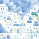 Watercolor painting of the stunning village of Oia on the Greek island of Santorini in blue and white. Original art by Nic Squirrell.