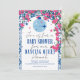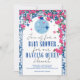 Mediterranean Greek musical bougainvillea-inspired Dancing Queen baby shower invitation measures 5x7 inches Indulge in the charm of the Mediterranean with the Mamma Mia-themed baby shower collection! Celebrate your little one's arrival amidst the serene hues of blue and white tiling reminiscent of the Santorini seaside. The invitations are made with playful elegance and pink bougainvillea, while the signs and decor are colourful and beautifully highlight the baby shower celebration. #zazzlemade