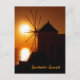 Santorini Sunset - Windmill in Oia Postcard - with text "Santorini Sunset"