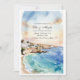 Set the tone for your destination wedding with this elegant Santorini-inspired wedding invitation, featuring a romantic watercolor coastal design inspired by the Mediterranean.