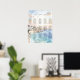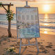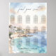 Featuring a romantic Mediterranean coastal watercolor scene with soft ocean blues and warm sunset tones, this seating chart adds a sophisticated and cohesive touch to your wedding reception.