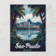 Discover the vibrant energy of Brazil's largest city with this striking vintage travel design featuring São Paulo. The artwork showcases the impressive modern skyline reflected in a peaceful body of water, beautifully framed by lush, tropical jungle foliage and towering palm trees. This retro style is perfect for urban explorers, fans of South American culture, and those who appreciate architectural and nature contrasts. An ideal souvenir, gift, or decorative piece celebrating this dynamic Brazilian metropolis.