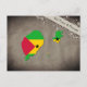 Postkarte mit einem Umriss von São Tomé und Príncipe, gefärbt in den Farben der Nationalflagge.