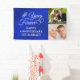 Celebrate a sapphire wedding anniversary (5th, 45th or 65th) with this personalised sapphire blue and white banner sign featuring an elegant calligraphy script typography design # YEARS INTO FOREVER for the number of years married accented with interlocking linked hearts and confetti and personalised with the couple's names, your custom text and 2 photos (perhaps Then and Now photos). Contact the designer via Zazzle Chat or makeitaboutyoustore@gmail.com if you'd like this design modified or in another colour, on another product or would like coordinating items.