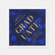 Elegant graduation napkin featuring the words "Graduate" in faux gold foil against a sapphire blue bokeh lights pattern background.
