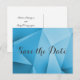 Sharp and modern Jewel Tones Wedding Save the Date Postcard featuring a blue funky geometric triangle background. This chic and simple design is a unique choice for announcing a modern wedding. Easy to customise with your wedding details. Click "Customise It" to find more personalisation options.