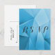 Sharp and modern Jewel Tones Wedding Response Postcard featuring a blue funky geometric triangle background. This chic and simple design is a unique choice for a modern wedding. Easy to customise with your wedding details. Click "Customise It" to find more personalisation options.
